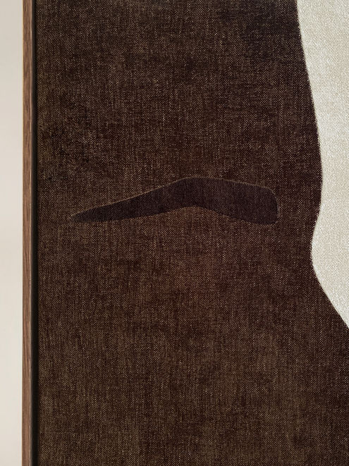 This pop-art inspired textile work shows a stylised minimal silhouette of two faces, adorned with a single eyebrow. ‘Intuition’ is about that layer of our being that is beyond our reason and beyond the obvious, where creativity ignites.